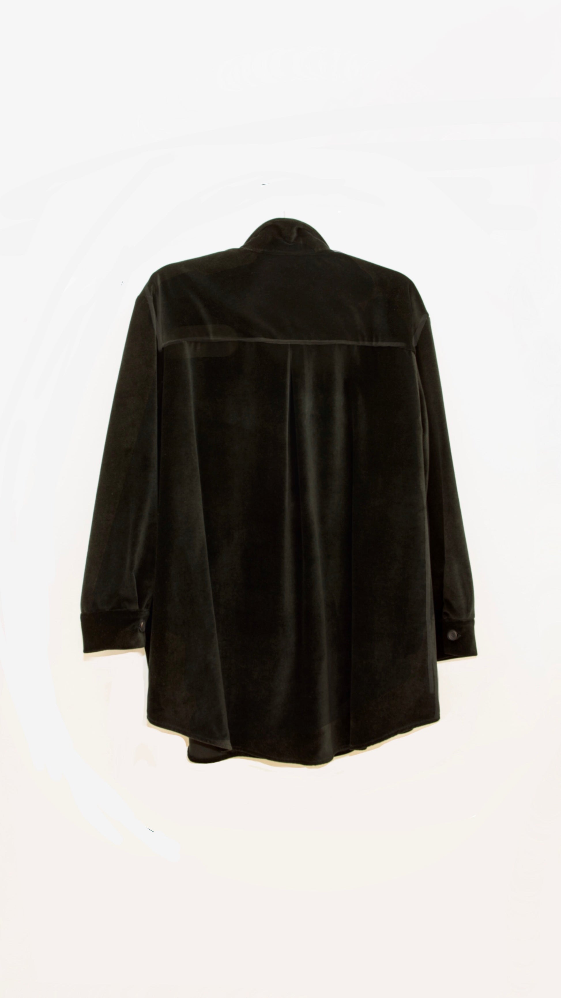 The Abbey Road oversized shirt strikes the perfect balance between structure and softness. It is made from the finest cotton velvet in a versatile, rich black hue. It's comfortable and flattering, with practical welt pockets, a back pleat, and distinctive leather buttons. This elegant shirt combines style and sustainability, crafted from premium quality cotton velvet sourced from a renowned British fashion house.