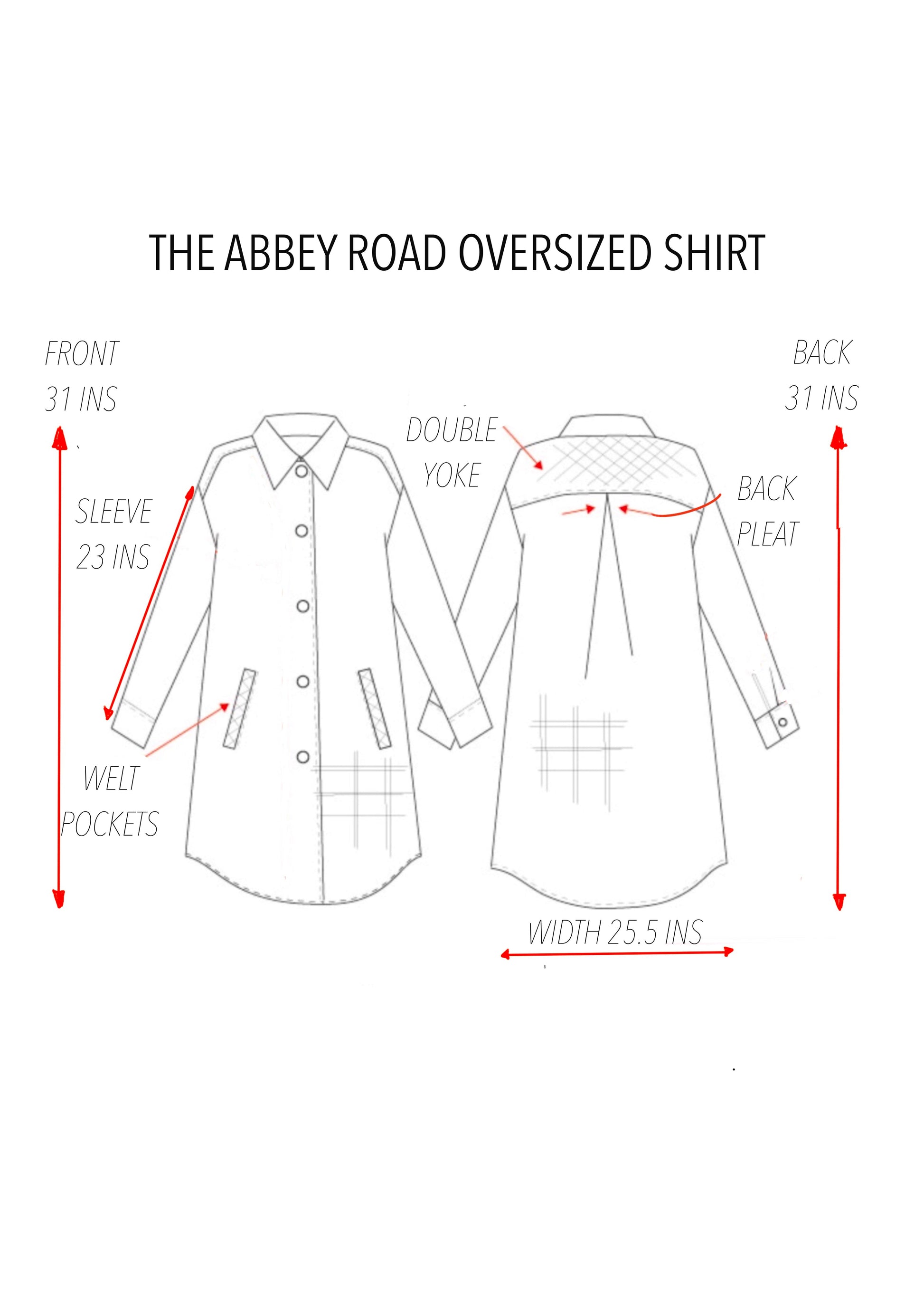 Dimensions: Front: 29.5 ins | Back: 31 ins | Width: 25.5 ins | Sleeves: 23 ins