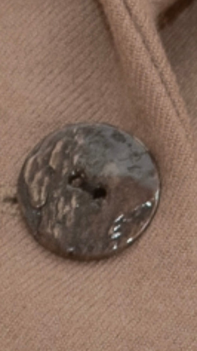 Our timeless Bond Street oversized jacket in camel is made from premium 100% wool. Repurposed from a leading British fashion brand, its length—just above the knee—makes it very flattering, elongating your shape. It is a practical length as you can wear it for a walk or into town, over trousers, dresses, skirts, or jeans. It has been tailored with extreme care, from the detailed stitching of the front pockets and peak lapels to the unique mother-of-pearl button. Even the distinctive label has been hand-stitched in place.