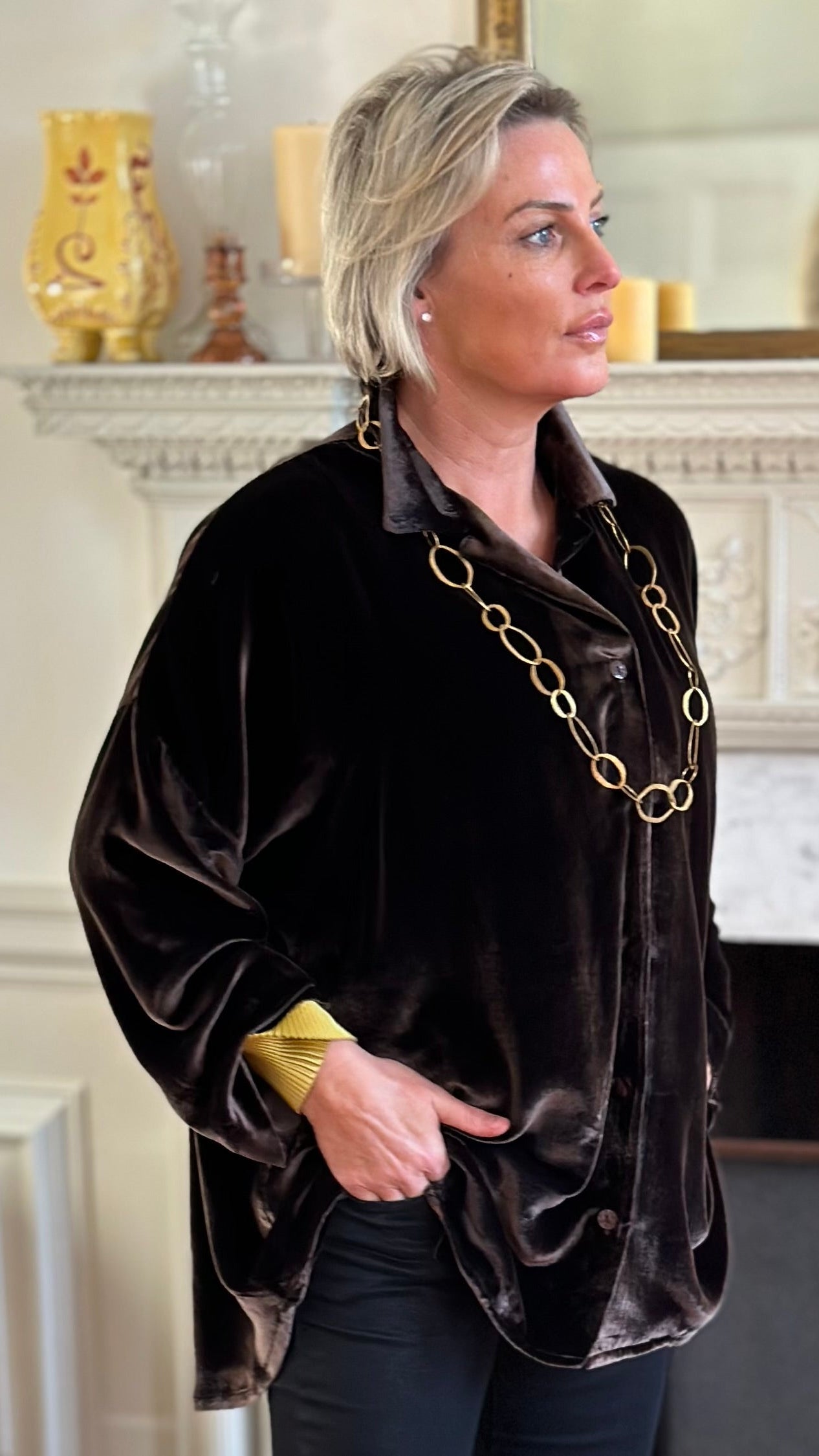 THE SOHO OVERSIZED SHIRT IN DARK CHOCOLATE VELVET