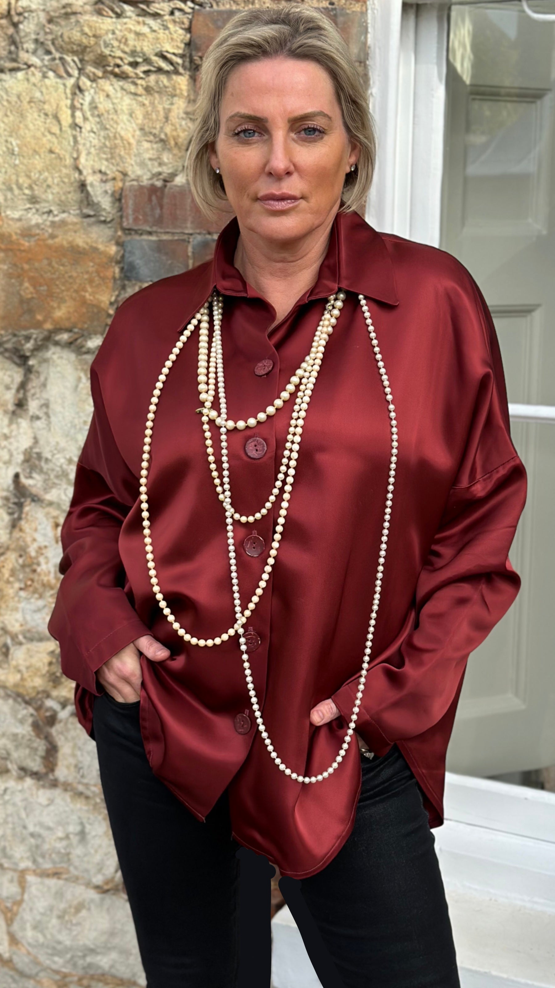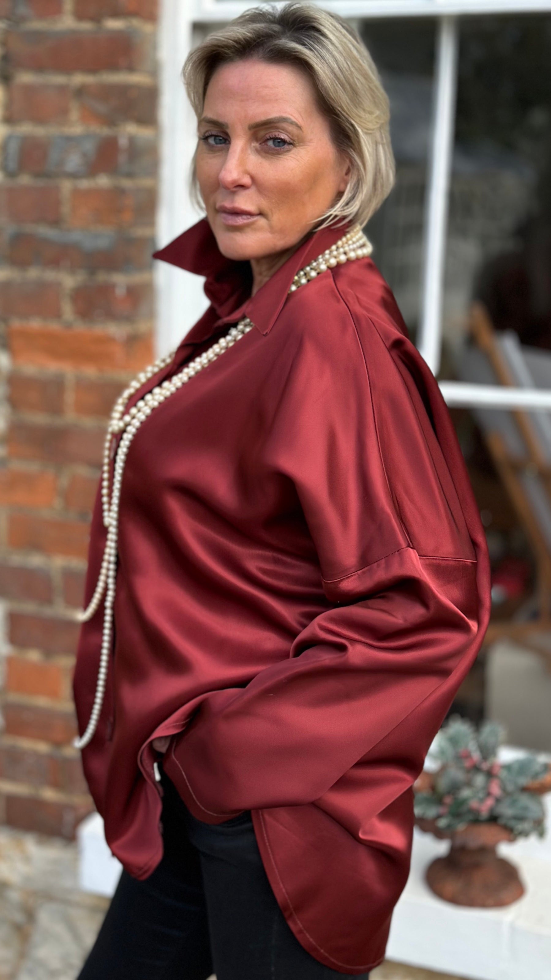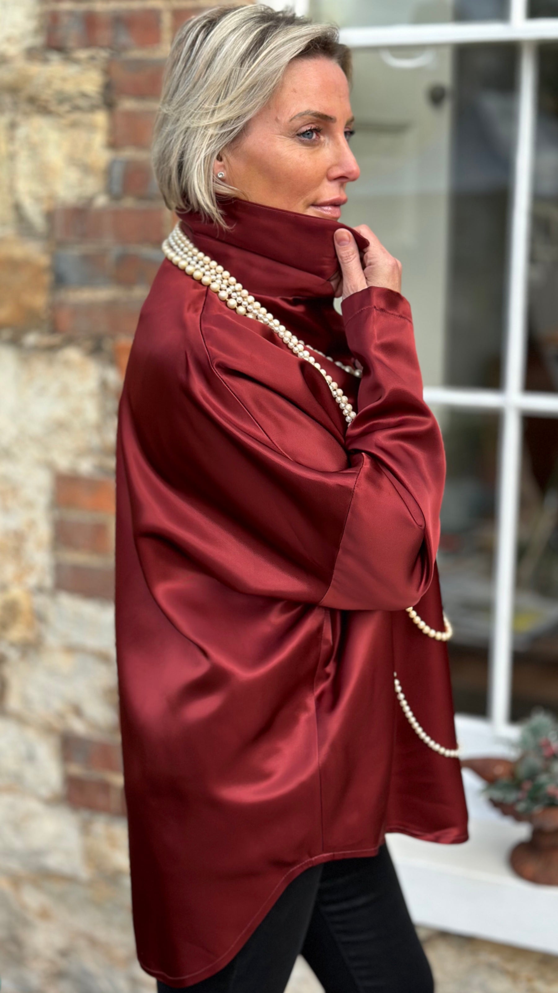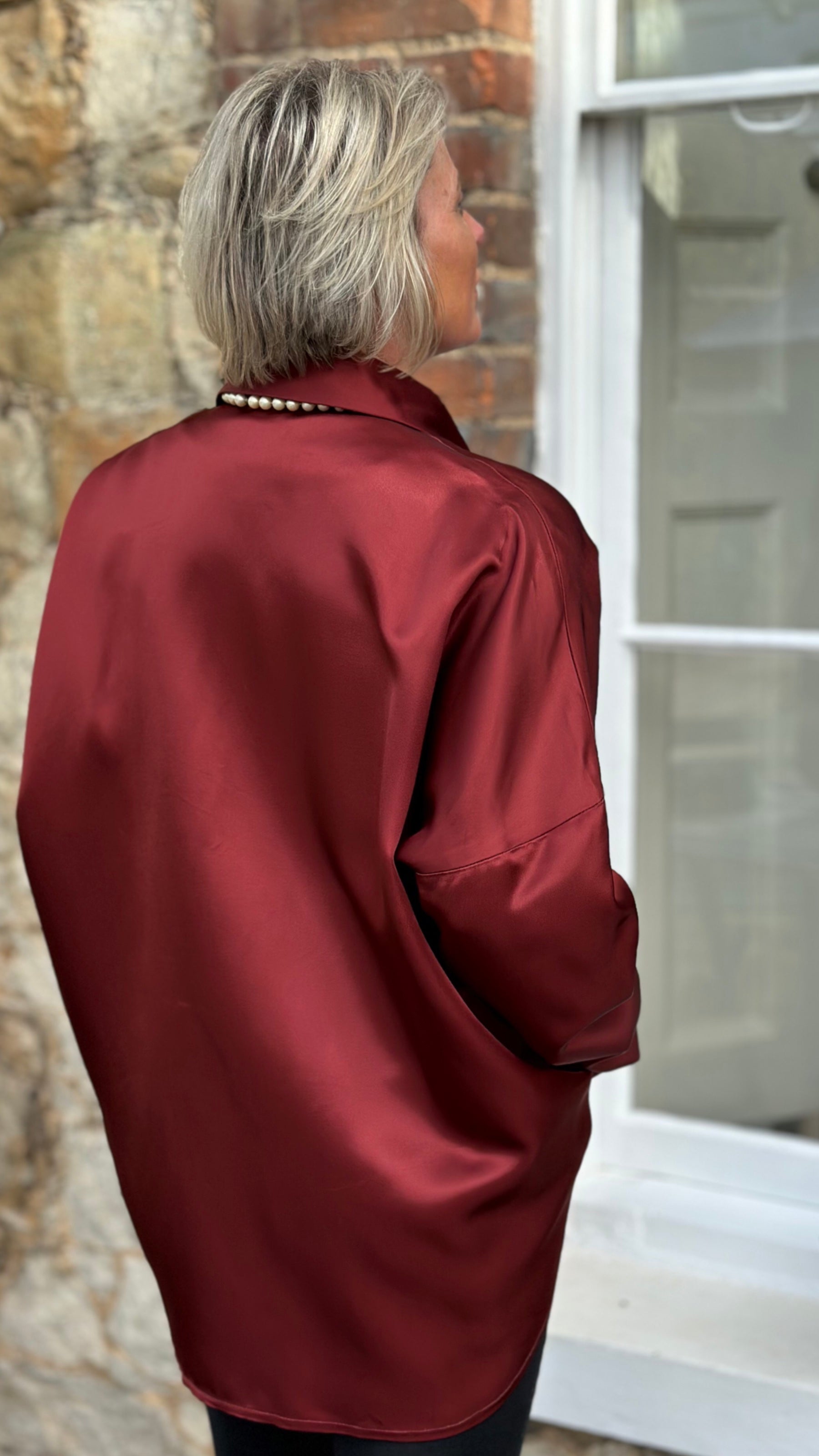 THE SOHO OVERSIZED SHIRT IN WINE SATIN
